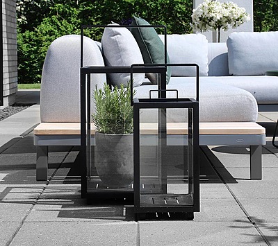 2Modern Cane-Line Lighthouse Lantern, Small, Lava Grey Aluminum