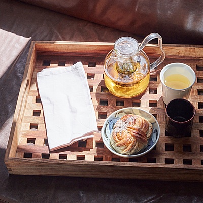 2Modern FRITZ HANSEN Fionia Tray, Teak, Large 20.5In W